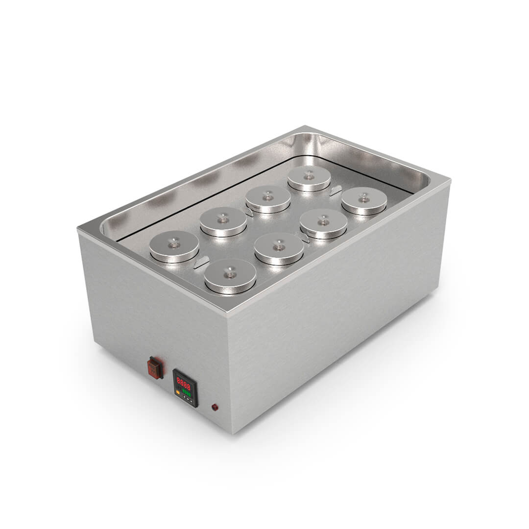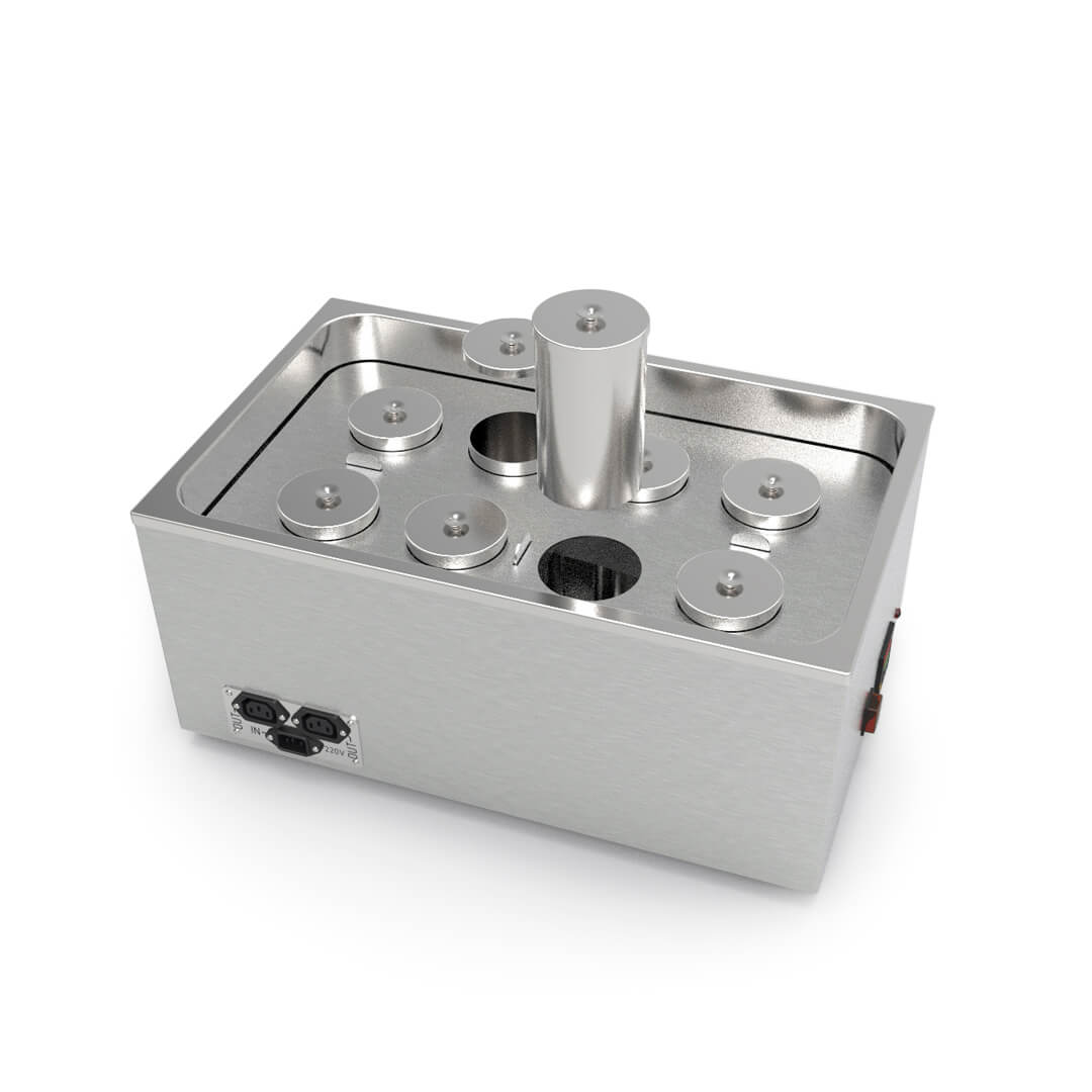 Elle est équipée de huit récipients métalliques (0,45 L chacun) contenant différents “peintures” de beurre de cacao coloré et les maintient à une température constante et chaude, vous garantissant ainsi une palette de couleurs vives prêtes à l’emploi. Le beurre de cacao reste très stable lorsqu’il est fondu, ce qui signifie qu’il peut rester liquide longtemps sans détérioration de sa qualité.