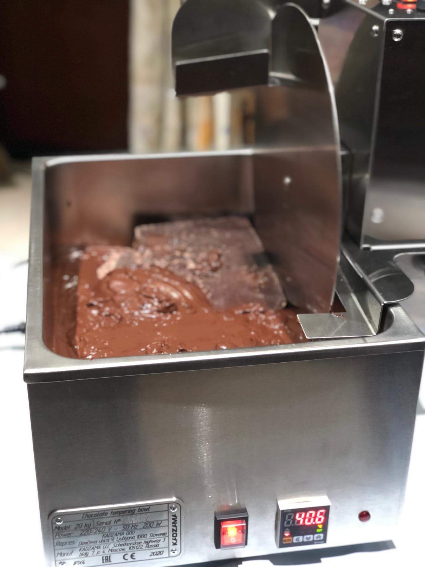 Оборудование работает отлично, но для нас уже маловато. Будем рассматривать покупку автоматической темперирующей машины KADZAMA.