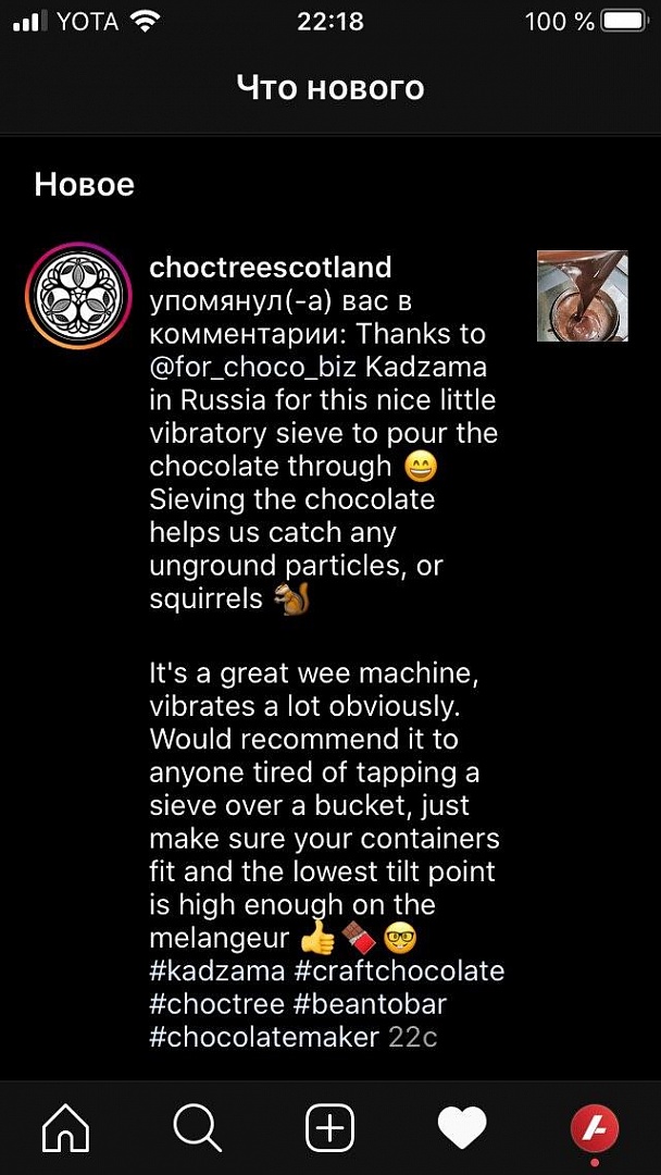 Thanks to @for_choco_biz Kadzama in Russia for this nice little vibratory sieve to pour the chocolate through. Sieving the chocolate helps us catch any unground particles, or squirrels.