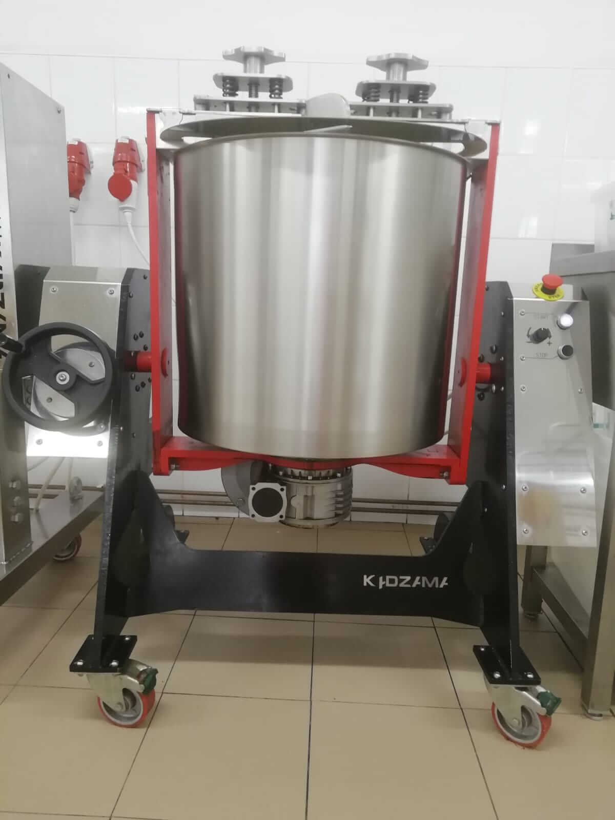 The combination of KADZAMA melanger, vibrating sieve and Gastronome container trolley is the best