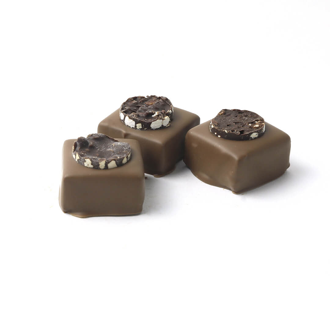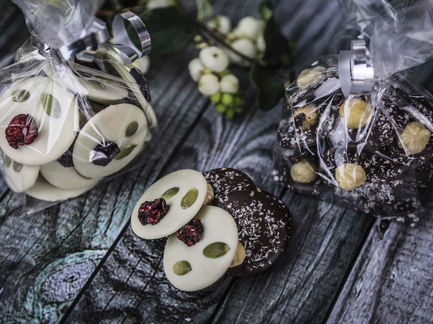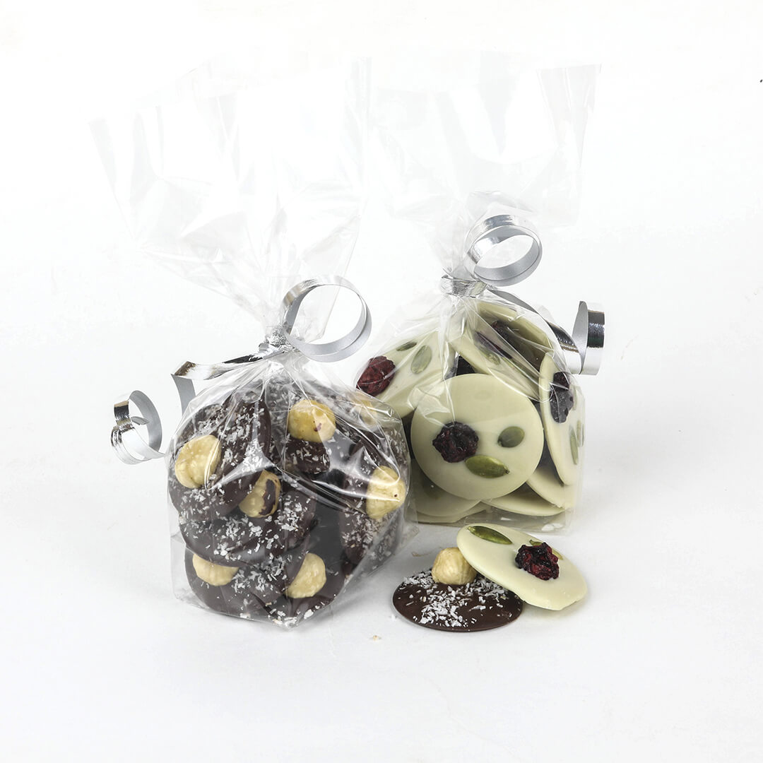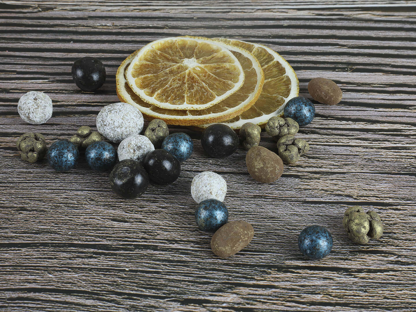 Pour créer toutes sortes de dragées, vous avez besoin d'une enrobeuse. Presque tous les ingrédients, comme les noix, les produits en vrac (éclats de cacao, par exemple), les baies sèches, la ganache, les pralines, la marmelade, peuvent être transformés en bonbons au chocolat. Il vous suffit de prendre la bonne quantité de chocolat du mini bol de tempérage dans n'importe quel bol pratique et de commencer à l'ajouter par portions aux produits dans le tambour. En conséquence, vous obtenez de délicieuses boules artisanales qui peuvent être vendues "à la caisse" dans les cafés en complément du café ou du thé à emporter, car les dragées sont peu exigeantes dans l'emballage, elles peuvent être jetées dans un sac ou une poche sans soucis qu'ils se briseront ou fondront, maculant tout autour. De plus, cette simplicité des dragées facilite leur vente et leur livraison dans n'importe quel coin du pays ou même du monde, elles survivront certainement même après les manipulations les plus imprudentes pendant le transport.