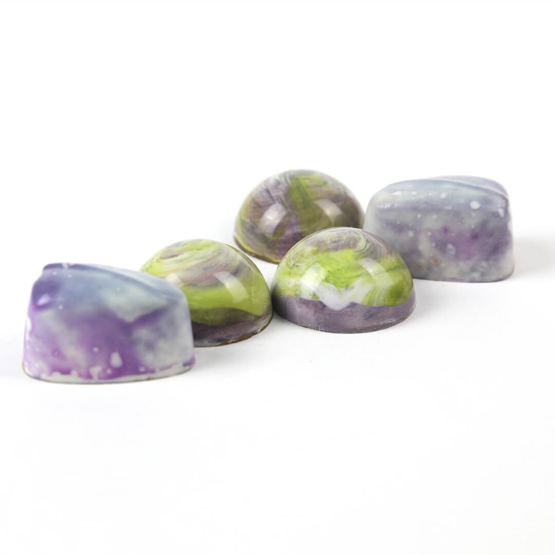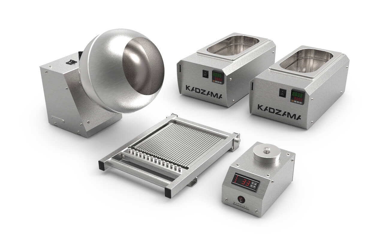 L'ingrédient principal de tout chocolat est le beurre de cacao. Les molécules de beurre de cacao peuvent être structurées en 6 types de cristaux différents, mais pour que le chocolat ne fond pas dans les mains, pour etre solide, homogène et visuellement agréable, nous avons besoin que la structure crystalline du beurre se compose principalement d'un seul type de cristaux - les plus stables, dont la température de fusion est de 34 ° C et plus. Pour ce faire, le chocolat doit être pré-cristallisé avant le travail. Il existe différentes manières: revenu, ensemencement, dissolution. Mais la méthode la plus rapide et, surtout, la plus propre est l'ajout d'un concentré de cristaux de beurre de cacao stable (également appelé «soie»), pour la préparation avec laquelle un incubateur spécial est nécessaire. Cela fonctionne comme ceci: vous placez simplement un morceau de beurre solide dans l'incubateur et après 12 heures, il se transforme en une pâte ne contenant que des cristaux stables. Tout ce dont vous avez besoin est d'ajouter de la soie à raison de 0,2% de la masse totale au chocolat liquide et de le mélanger. Et c'est tout - le chocolat est prêt. En plus du chocolat, vous pouvez également pré-cristalliser la ganache pour une belle texture et une durée de conservation plus longue.