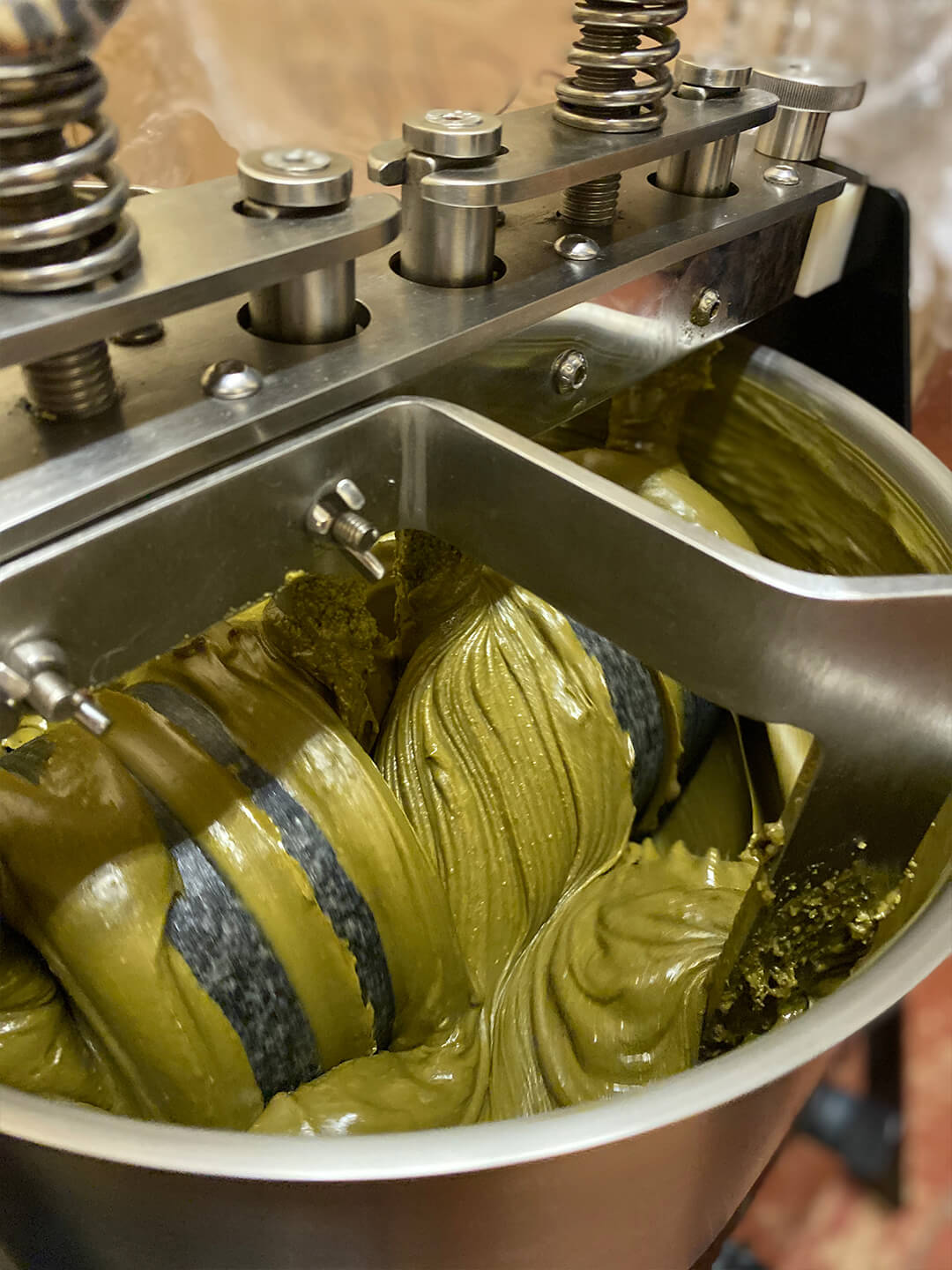 Так же у нас есть меланжёр KADZAMA на 57 кг. В ряду остальных машин — держит марку. По времени помола все меланжёры на производстве, включая KADZAMA, идентичны.