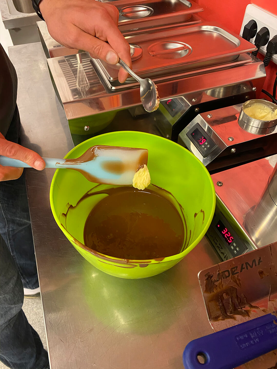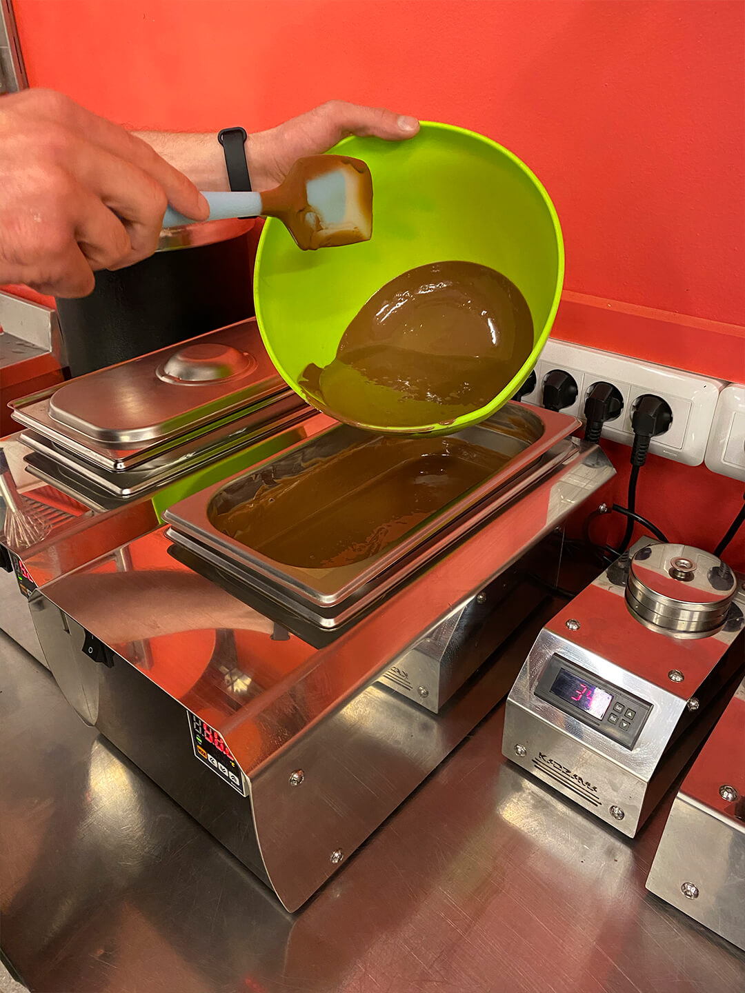 1. 24/7 работает чудо-аппарат "инкубатор кристаллов какао-масла, что упрощает работу с шоколадом. Темперирование в любом количестве и когда угодно - СУПЕР!
